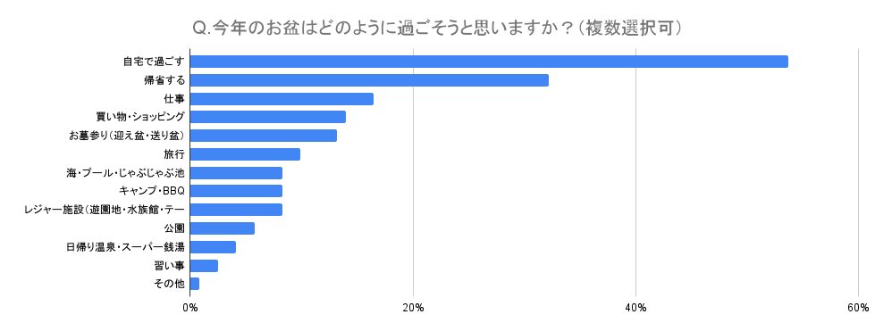 ・前半は実家に帰省で、後半は家族で旅行に行ってバーベキューなどをする予定です。毎年恒例なので、季節感を味わいたいです (40代・埼玉県・子ども1人)