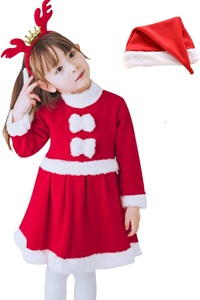 ワンピースに帽子もセットになった、かわいいサンタが完成するコスチューム。ふわふわの白いパイピングがついてより華やかに。