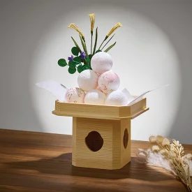 お月見のお供え物といえば、お月見団子です。ただの白いお団子飾りではなく、金彩やラメを散らした華やかなちりめん素材を使っており可愛らしさと高級感を演出しています。