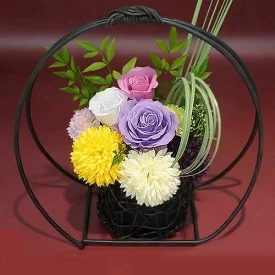 満月のような丸い心で穏やかで幸せな毎日を願う和風プリザーブドフラワー。和テイストあふれる満月型のカゴも、中秋の名月を眺める風流な夜にぴったりとマッチしています。
