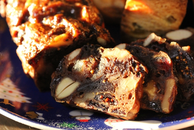 ドライフルーツとナッツをぎっしり詰めた薄型のパンで、シュトーレンに似た風味を持ちます。アルザス地方ではクリスマスの定番として親しまれ、保存性が高く、少しずつ切り分けて食べるのが特徴です。スパイスの香りと果実の甘みが調和した、素朴で奥深い味わいです。