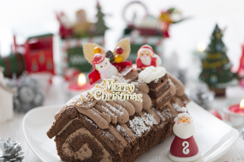 「クリスマスの薪」を意味するこのケーキは、切り株の形をしたロールケーキ。暖炉に薪をくべる習慣に由来し、チョコレートクリームで木の樹皮を模したデコレーションが特徴です。フランスでは定番のクリスマスケーキとして親しまれています。