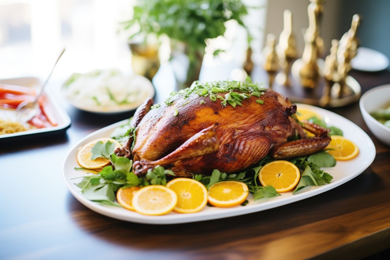 ローストターキーは、アメリカやイギリスのクリスマスディナーの定番料理です。感謝祭でも食べられる七面鳥ですが、クリスマスにはスタッフィング(詰め物)をして焼き上げ、グレイビーソースやクランベリーソースを添えて提供されます。中世イギリスでは、クリスマスに大型の肉料理を振る舞う習慣があり、七面鳥はその伝統を引き継いだもの。家族で囲む豪華な食卓の象徴として、今も多くの家庭で親しまれています。