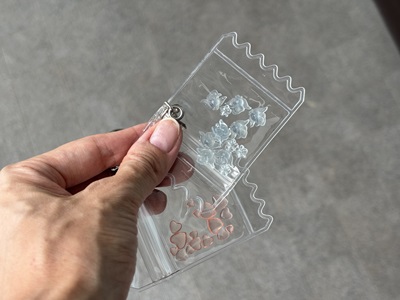 ③ネイルパーツを好きな量だけ入れ、口を閉じると完成。外に出て色が変わるか試してみましょう。