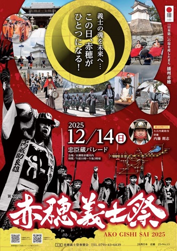 赤穂義士祭は、兵庫県赤穂市で開催される赤穂義士たちを称える祭りです。1903(明治36)年に初開催され、2025年で122回目となる歴史ある祭りとして知られています。