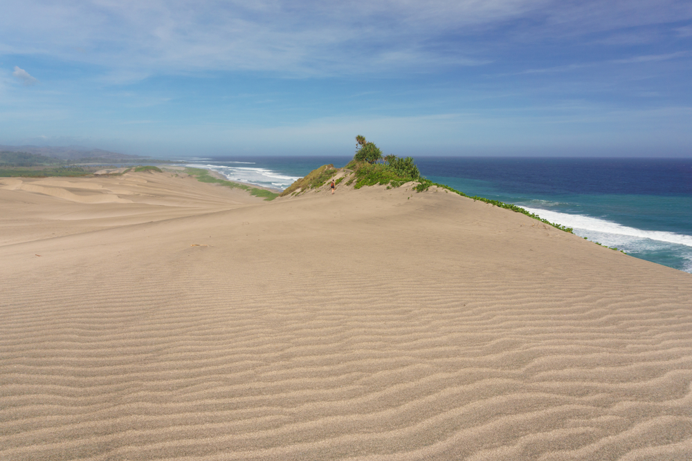 フィジーには砂丘もあります。ビチレブ島南西部の都市、シンガトカの海岸沿いに広がる砂丘が「シンガトカ大砂丘」です。砂丘周辺は「シンガトカ大砂丘国立公園」として整備されており、丘の高さが約60メートルにも達する場所や、銀色に輝く砂と青い海のコントラストが美しい場所を見ることができます。ここでしかできない体験を味わえる絶景スポットです。