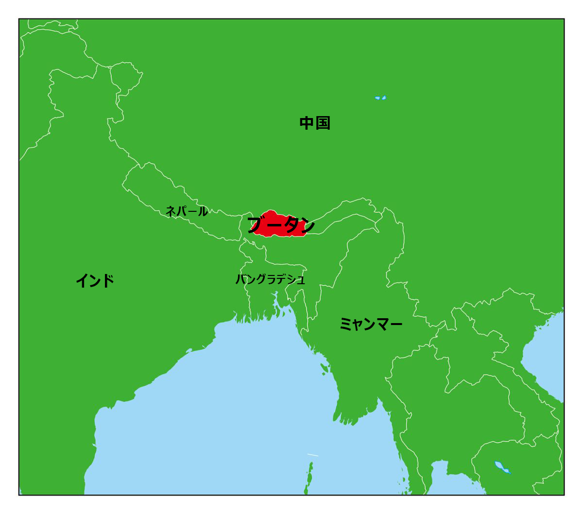 ブータンは南アジアに位置する国です。北側は中国、南側はインドに接しています。