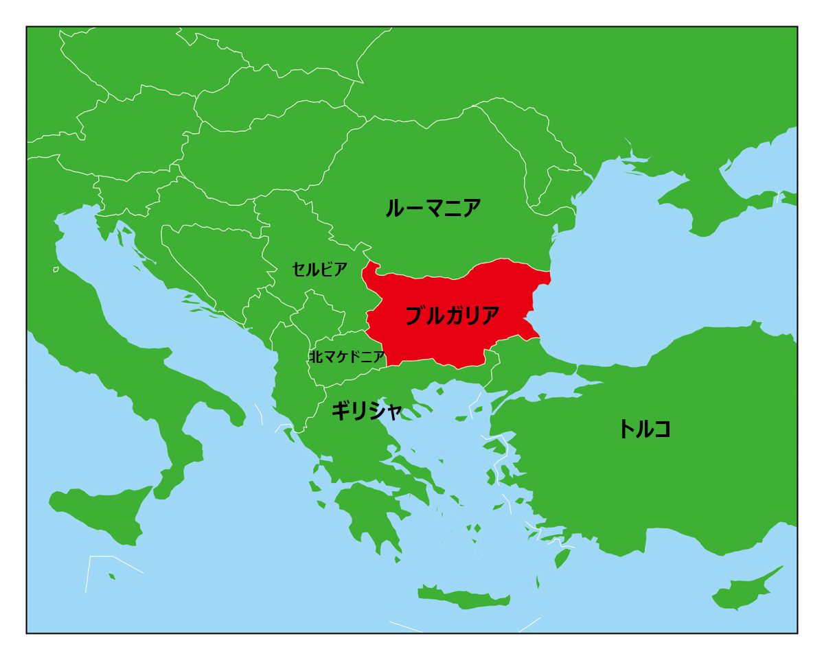 ブルガリアはバルカン半島に位置します。北にルーマニア、西にセルビア、北マケドニア、南にギリシャ、トルコと隣接し、東は黒海に面しています