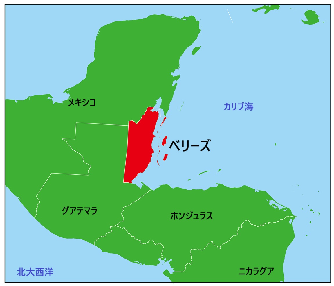 中央アメリカのユカタン半島の付け根部分。東側はカリブ海に面し、北と西にメキシコ、西にグアテマラと隣接しています。