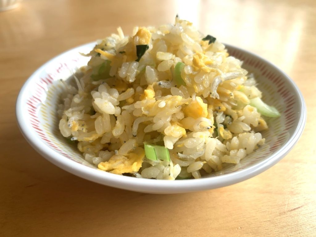カルシウムがたっぷりとれるチャーハンです。しらすの塩味を生かしてふっくら仕上げます。仕上げにちぎった焼きのりを散らしても風味が増しておすすめです。