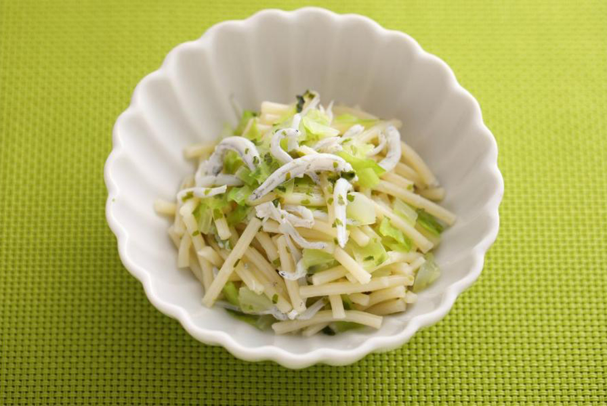 たくさん食べるようになったら作ってあげたいパスタ。しらすと青のりの香りが食欲をそそります。