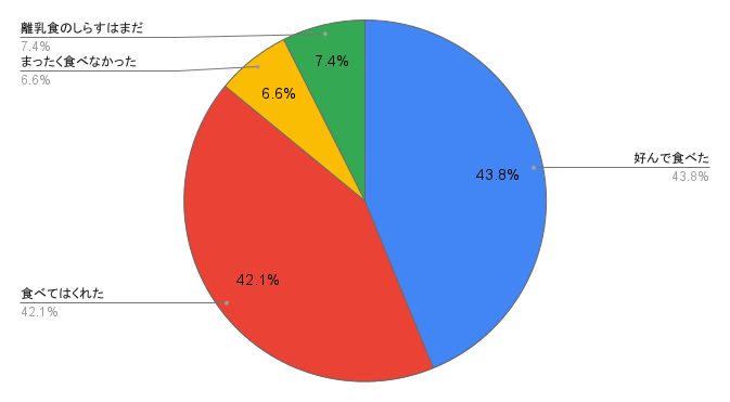 結果は、半数近くの赤ちゃんはしらすを『好んで食べた』と回答。『食べてはくれた』を合わせると8割以上の赤ちゃんはしらすを食べてくれているようです。