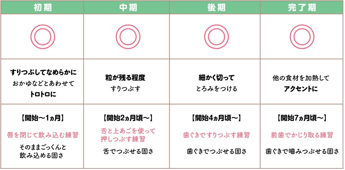 【5~6ヵ月/開始~1ヵ月】唇を閉じて飲み込む練習(そのままごっくんと飲み込める固さ)