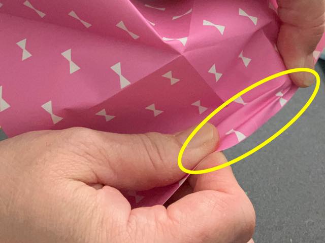 通常、折り間違いややり直しをしていると、普通の紙の折り紙であれば破けてしまうことがあります。でも、この折り紙は思い切り引っ張ってみると、破けるどころか紙が伸びるのです。