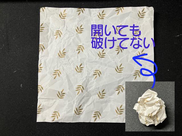 それでも破けていないので、丁寧に開いて手で平らにすればシワはありますが始めからまた折りなおすことができます。
