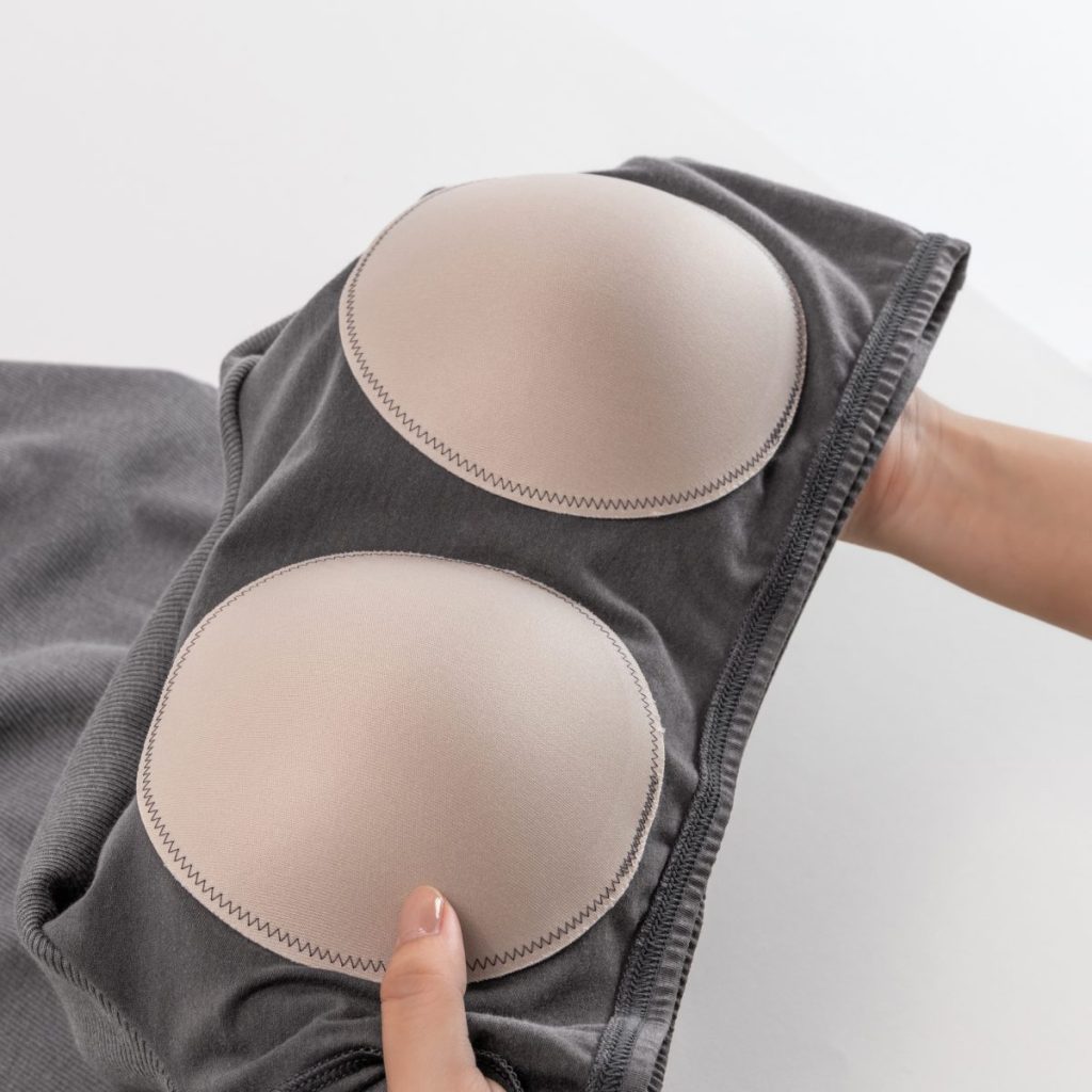 素材には天然素材由来の再生繊維「テンセル™モダール」とコットンの混紡糸を使用。柔らかく、伸縮性があり、肌触りの良さも特長です。カップは丸型で縫い付けられているため、着用時のずれがなく、洗濯時の取り外しも不要で便利です。