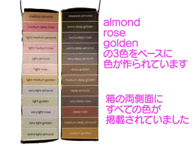 基本の色として「アーモンド」「ローズ」「ゴールデン」の3つを選び、繊細なグラデーションでさまざまな肌を表現しています。
