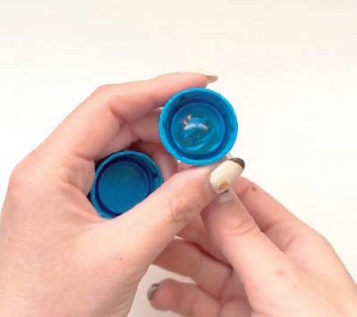 ①ペットボトルのキャップにビー玉を入れる。もう1 つのキャップをかぶせ、ビニールテープでとめる