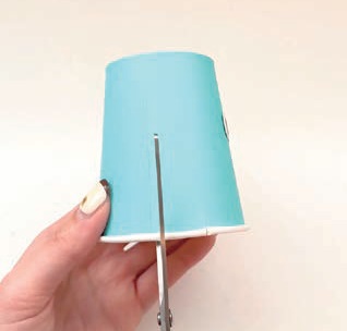 ④紙コップのフチに、対角線上に左右2カ所ずつ1㎝程度の切り込みを入れる