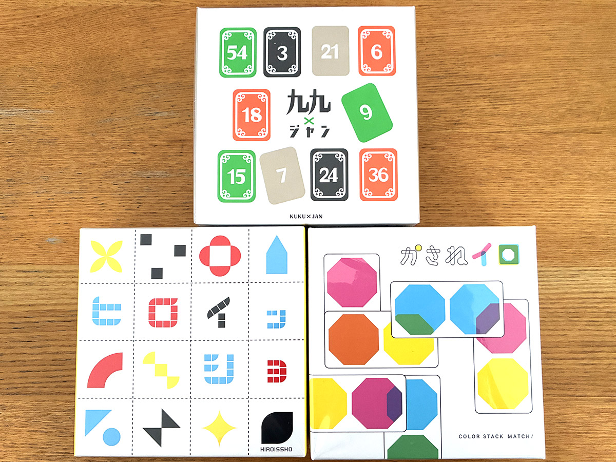 一番勉強要素があって頭を使うのが「九九ジャン」、短い時間で終わらせるならば「ヒロイッショ」、幅広い年齢で遊ぶならば「かさねイロ」と筆者は感じました。