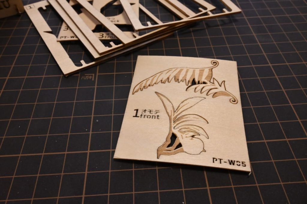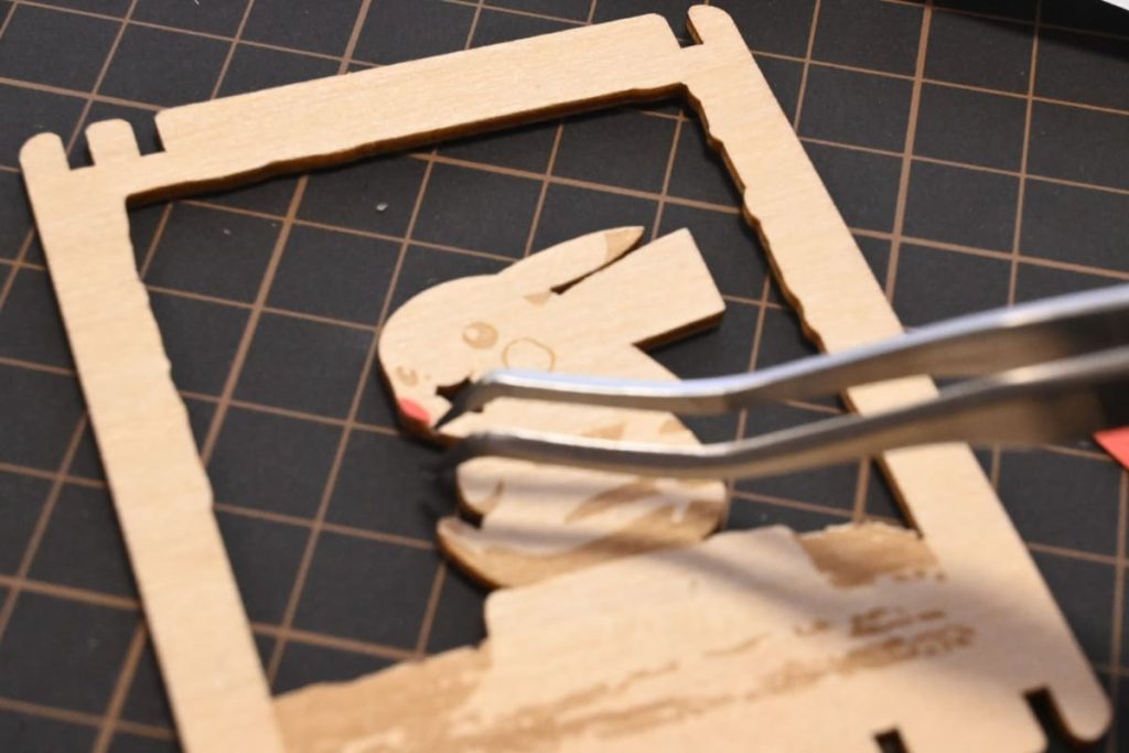 木のパーツ部分は、通常のペーパーシアターに比べると分厚く、手でも切り離しやすい仕様でした。もちろん細かなパーツはきちんとカッターナイフを使うことをおすすめします。