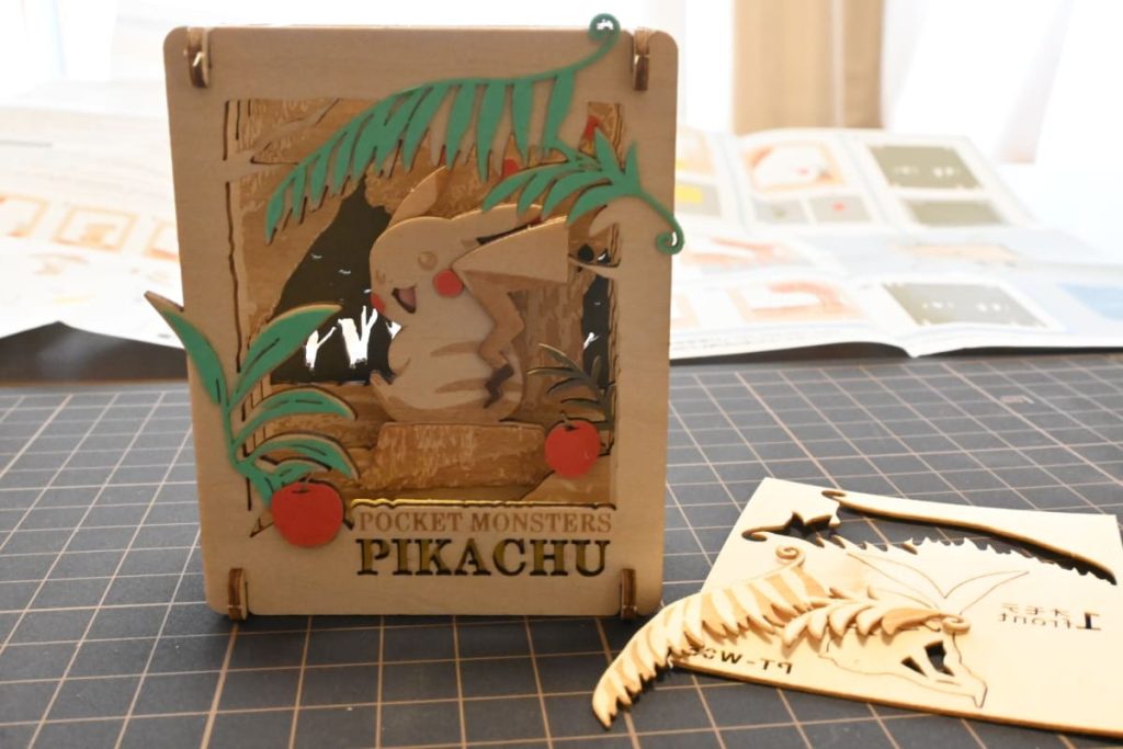 改めて99%完成。立体的でかわいらしいピカチュウのデザインです。南国感もあり、夏にぴったりですよね。木が持つ、温かみがある柔らかな雰囲気も素敵です。