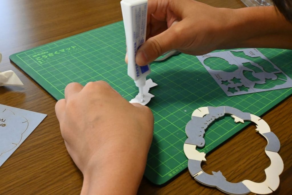 最後は、立体的に組み上げていきます。各パーツを固定する紙にも接着剤をつけているので、壊れにくい仕上がりに。