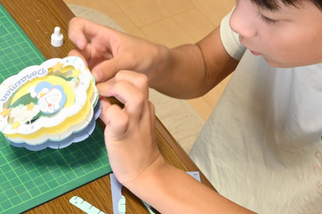 創作意欲に火がついた子どもは「夏の自由工作で、このアイデアをマネできないかな?」と想像力を働かせていました。今回の体験をどう生かすのかが楽しみです。筆者も「難易度5の難しいペーパーシアターにチャレンジしたい」と、次回作の機会を狙っています。