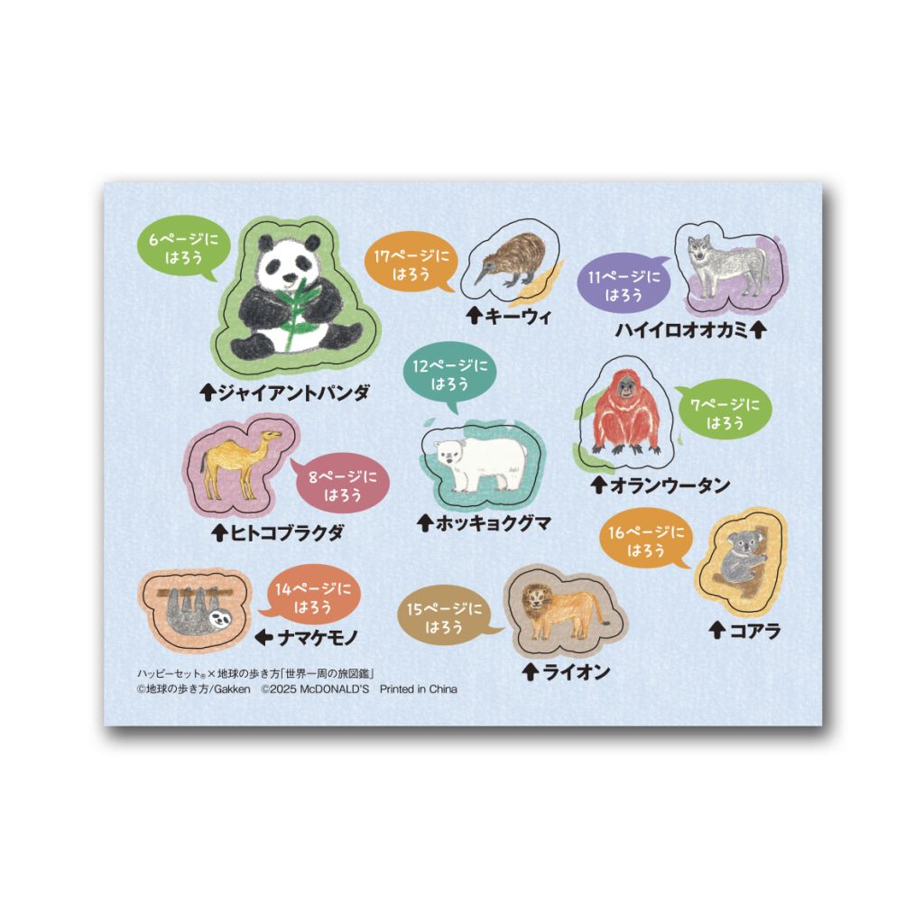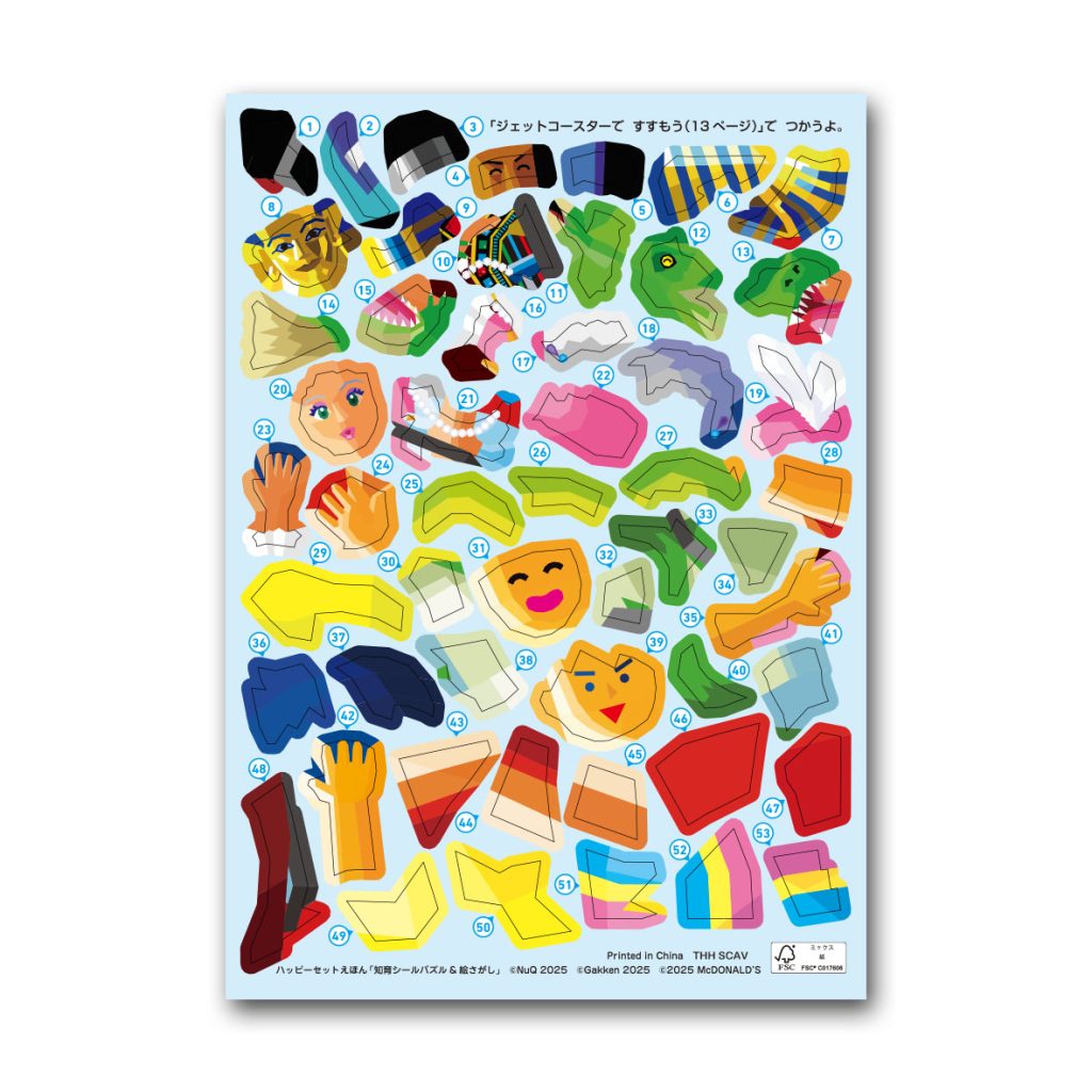 株式会社Gakkenで人気の書籍がハッピーセットオリジナルに再編集され、2025年「ほんのハッピーセット」第4弾として、7月11日(金)より絵本「知育シールパズル&絵さがしたんけん! ハッピーセットオリジナル編」、ミニ図鑑「地球の歩き方 For Kids 世界一周の旅図鑑」として新登場! 絵本は、不思議な世界を探検しながらシールを貼って完成させるシールパズルと、絵さがしがお楽しみいただけます。ミニ図鑑は、人気旅行ガイドブックのハッピーセットオリジナル版で、図鑑に記載されたQRコードをスマートフォンで読み込むと、デジタルパズルゲームで遊ぶことができます。