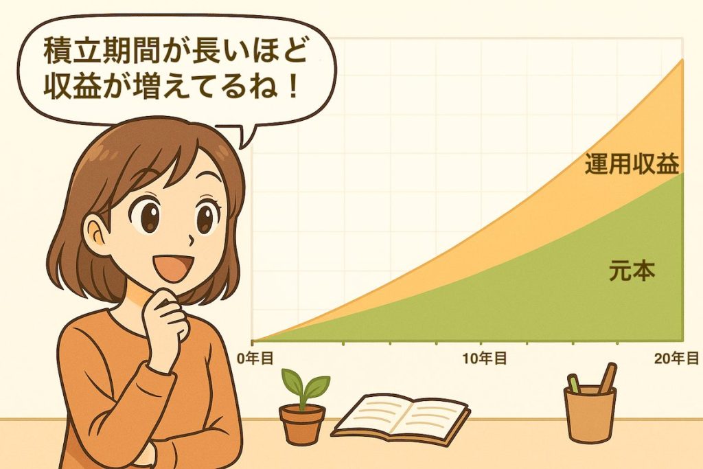 新NISAによる積み立て投資は、「始めるタイミング」より「長く続けること」のほうが重要です。投資期間が長いほど複利の効果で資産が大きく育ちます。