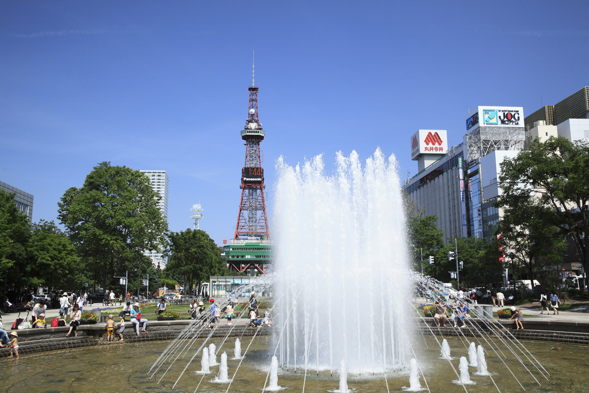 札幌市の中心部を東西に約1.5kmにわたって横切る「大通公園」は、多くの市民や観光客が訪れる街のオアシスです。公園の夏の風物詩となっているのが、西3丁目にある大きな噴水。花壇やさっぽろテレビ塔を背景に、ダイナミックな水しぶきが涼しげな景観を創り出します。春から秋の運転期間中は多くの人が集い、リラックスした時間を過ごす人気のスポットとなっています。