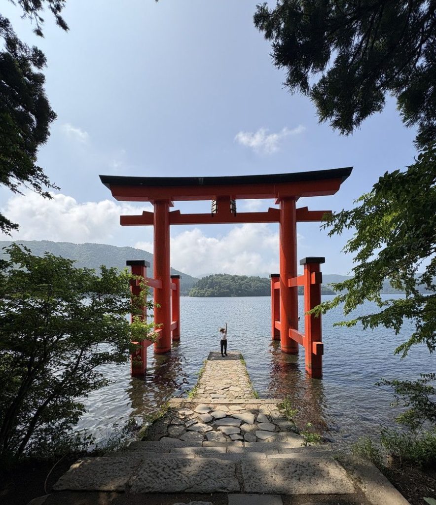 芦ノ湖に面した「平和の鳥居」は人気のフォトスポット。一時は雑踏回避のため周辺は立ち入り禁止になっていましたが、現在は解除されています。比較的人の少ない午前中の早めの時間がおすすめです。