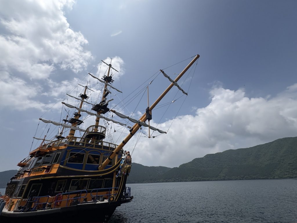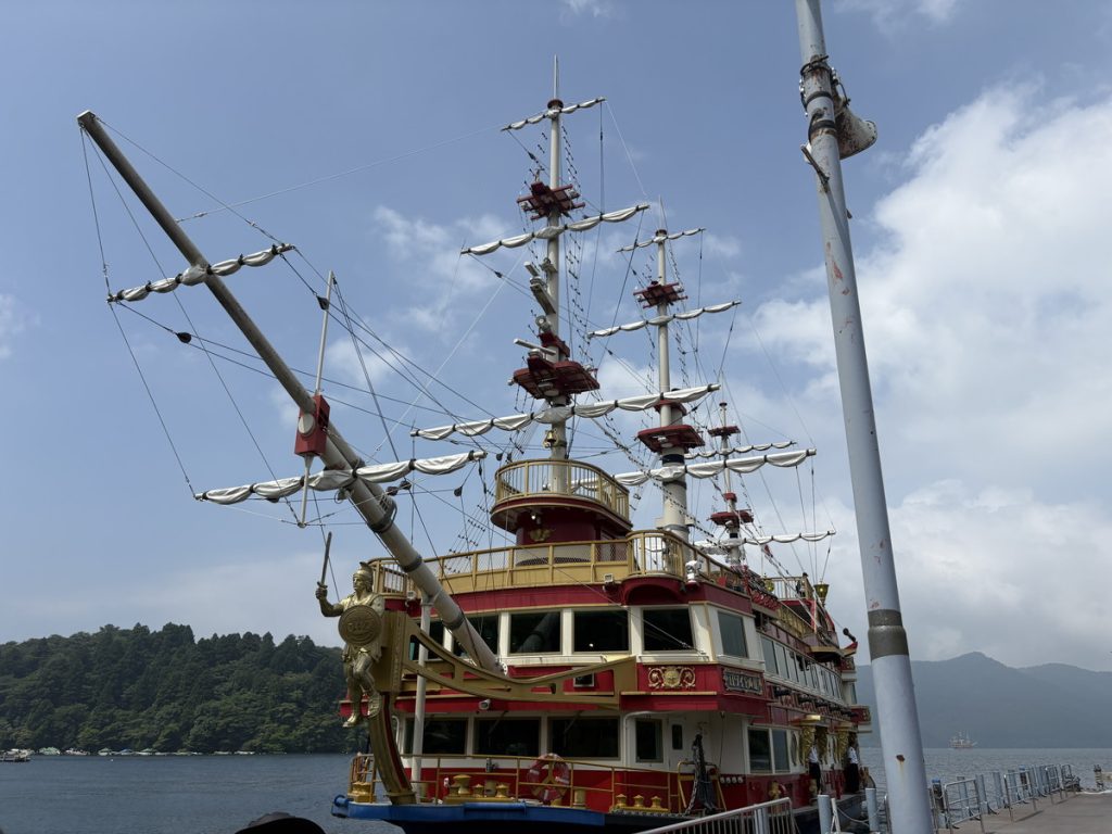 芦ノ湖の3つの港を結ぶ箱根海賊船。今回は元箱根港から桃源台港までの約30分間乗船しました。