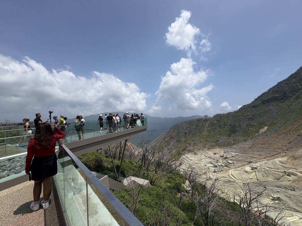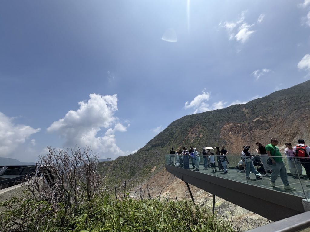 これまで、しっかり眺めるには噴火口に向かう散策路などを歩く必要がありましたが、噴気を見下ろせる谷へ突き出した「息吹のデッキ」から、子どもでも眺められるようになりました。