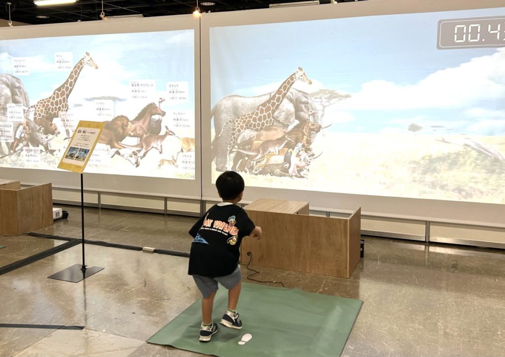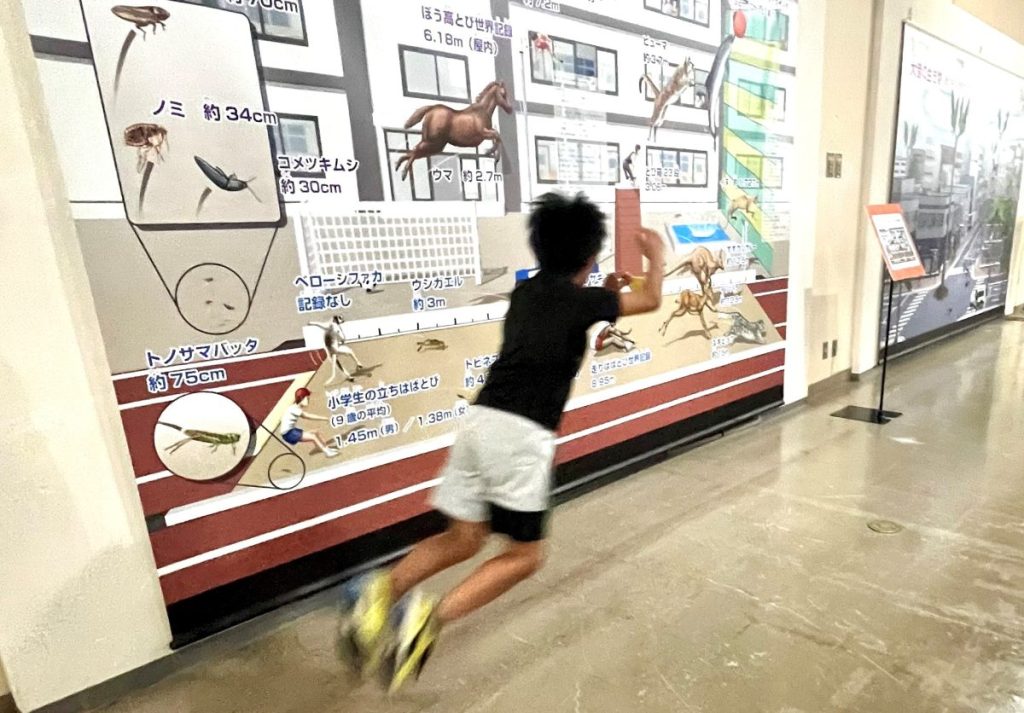 ほかにも昆虫や動物たちとジャンプ(立ち幅跳び)で対決できるコーナーなど、体を動かせる展示もいっぱい!