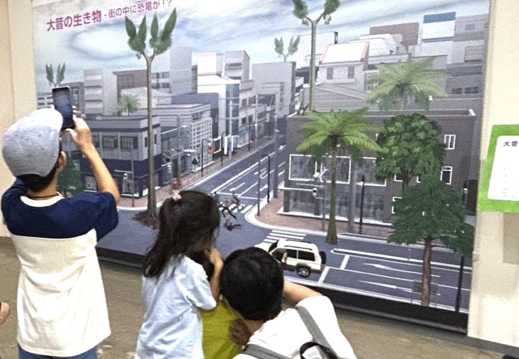 スマホをかざすと恐竜が? 現代の街中から、アルゼンチノサウルスやティラノサウルスなどを探し出すARゲームも大人気です。