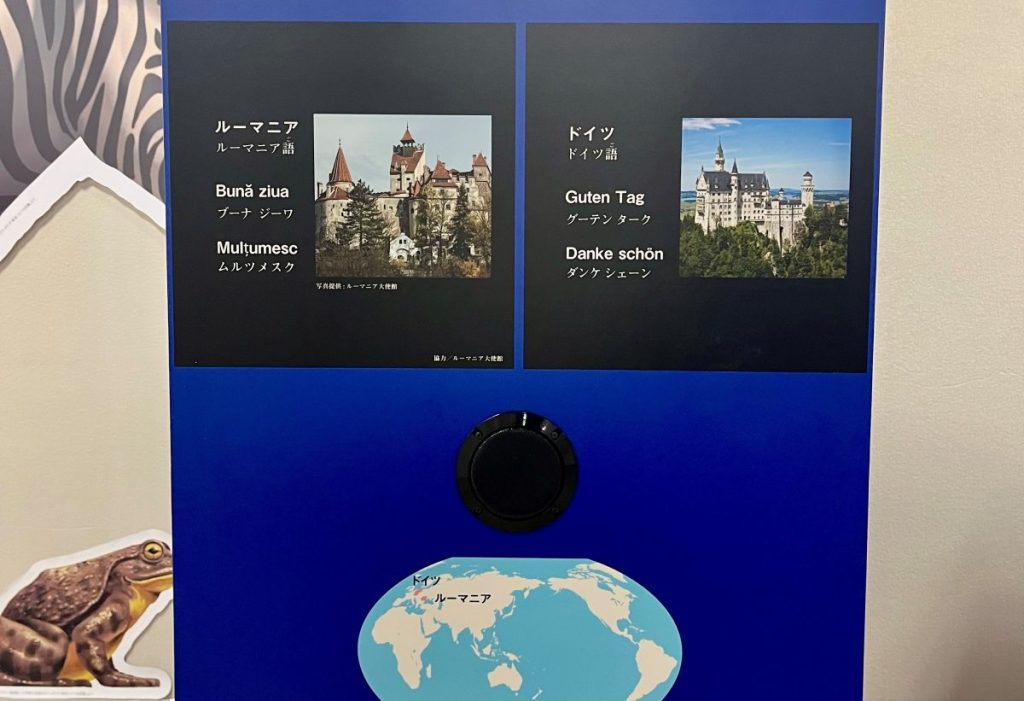 アラビア語、スペイン語、スワヒリ語、ヒンディー語など、計10言語での「こんにちは」「ありがとう」を聞くことができるマシンを使って、世界の言葉を聞いてみよう!