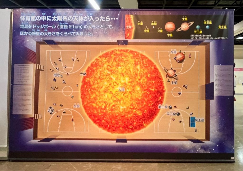 地球がドッジボールだったら太陽や木星の大きさは? 遠い宇宙を身近なサイズに例えてわかりやすく展示したコーナーも。