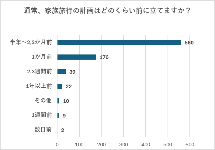 では、どのくらい前から家族旅行の予定を立てているのでしょうか。