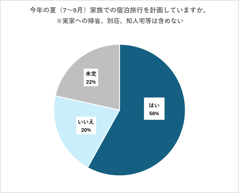 一方で、「いいえ」と答えたのは20%、「未定」は22%という結果に。旅行をするかどうか、検討中の家庭も多くあることがわかります。