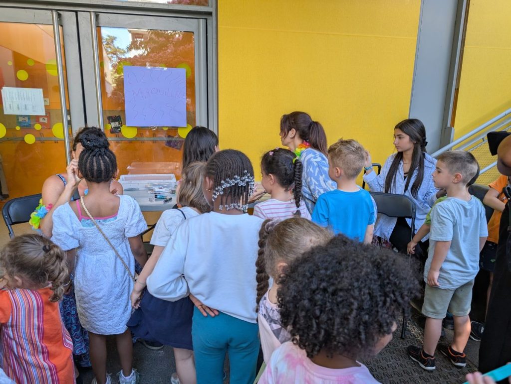 登園時には、受け付けの先生が「今日のお昼は園で食べる? おやつも食べる?」とひとりずつ確認し、それが済んでから子どもを預ける、という流れになっています。(お昼ご飯は家で食べてもOK。おやつまで食べる=18時まで預かってもらう、という意味です)そのため、保護者たちは自然と扉の前に小さな列を作ります。