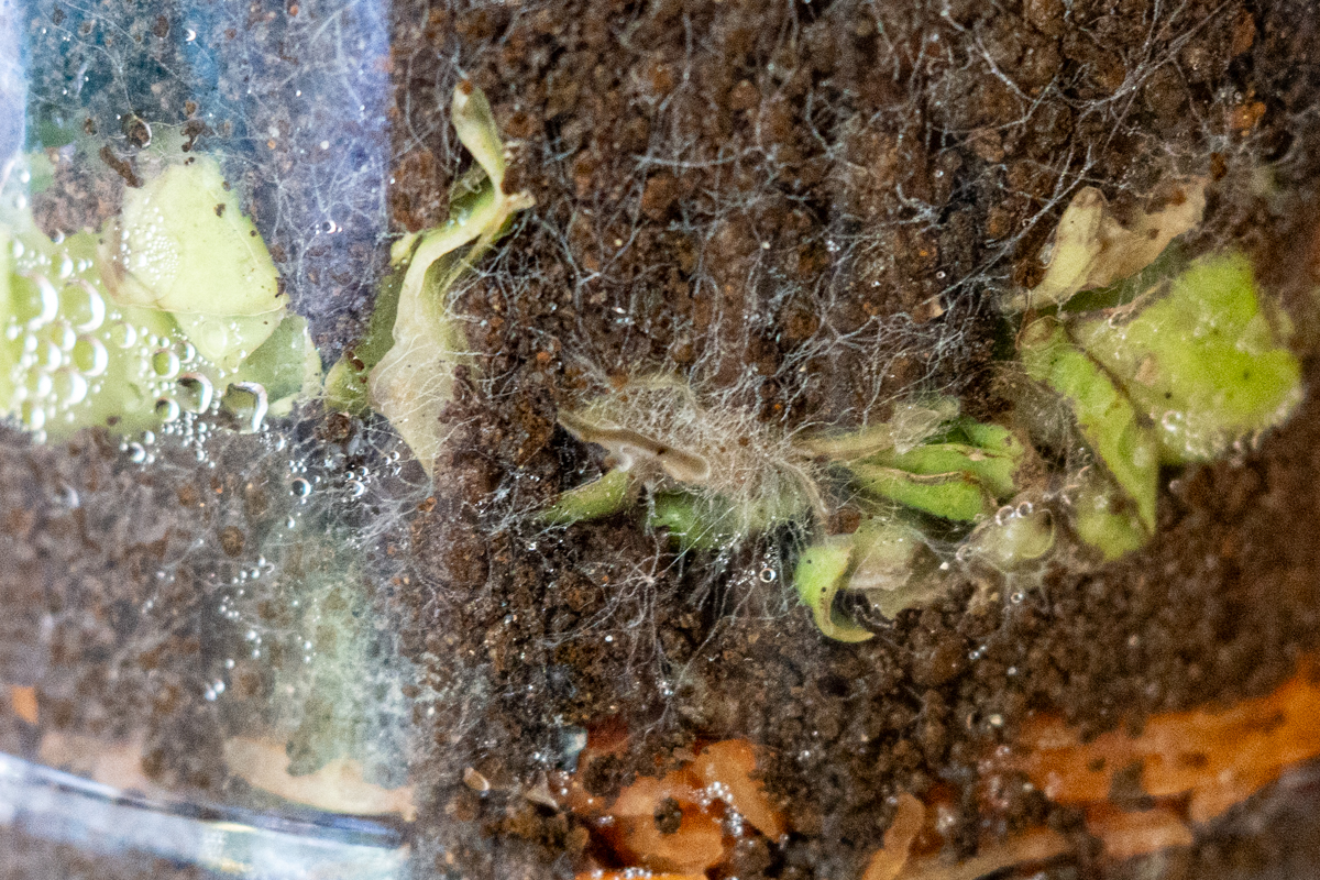 3. 角度を変えて見てみると、キャベツを中心に、細い糸のようなものが発生しています!