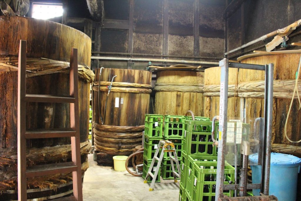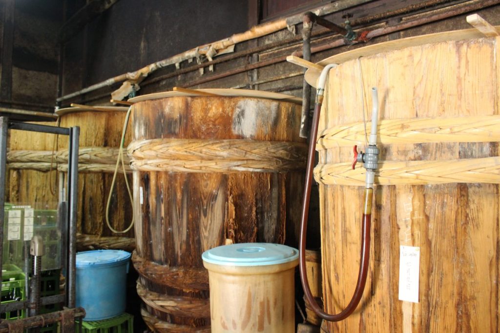 店内の奥の窓から見える大きな木樽は、お店の人に声をかけると、近くで見学させてもらうことも可能だそうです。近くに行くと大きな木樽は迫力満点。お醤油のいい香りが広がります。
