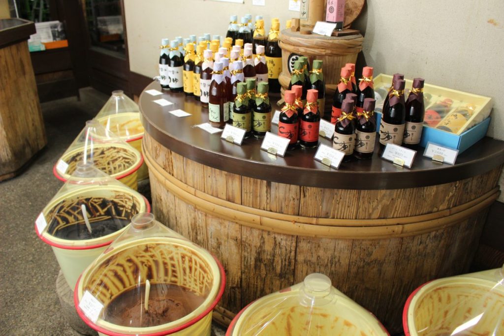 店内はいろんなお醤油などがずらりと並び、一口にお醤油と言っても、こんなに種類があるのかと驚きます。