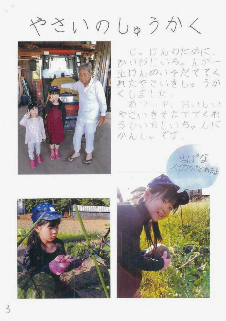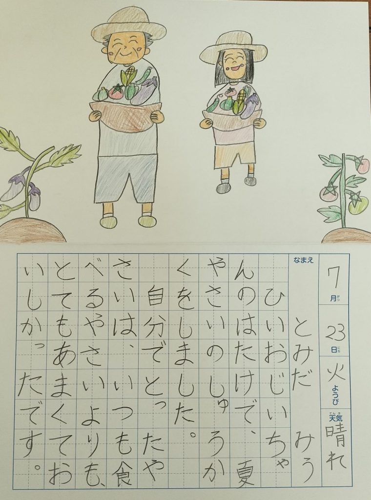 未羽さんのお母さん:4歳下の妹と一緒に笑顔で楽しく、自主的に自由研究に取り組んでいました。曽祖父と一緒に野菜を収穫したのも心に残っているようで、そのときのことを絵日記にも書いていましたね。