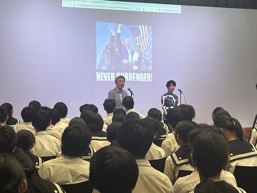 その後、支持層の背景、宗教観、産業構造、地理的格差、ポピュリズムの浸透など、多角的な視点からの講義が続き、「トランプ大統領がなぜアメリカ大統領に選ばれたのか」の解説に、生徒たちは真剣に耳を傾けました。