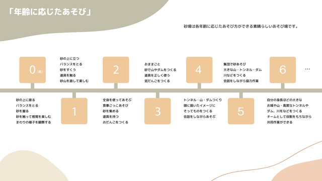 砂場は、公園の中でも、0歳の赤ちゃんから成長に合わせた遊び方ができる、めずらしい場所です。「汚れちゃうから」とちょっとためらってしまうこともあるかもしれませんが、それ以上に、得られるものが本当にたくさんあります。