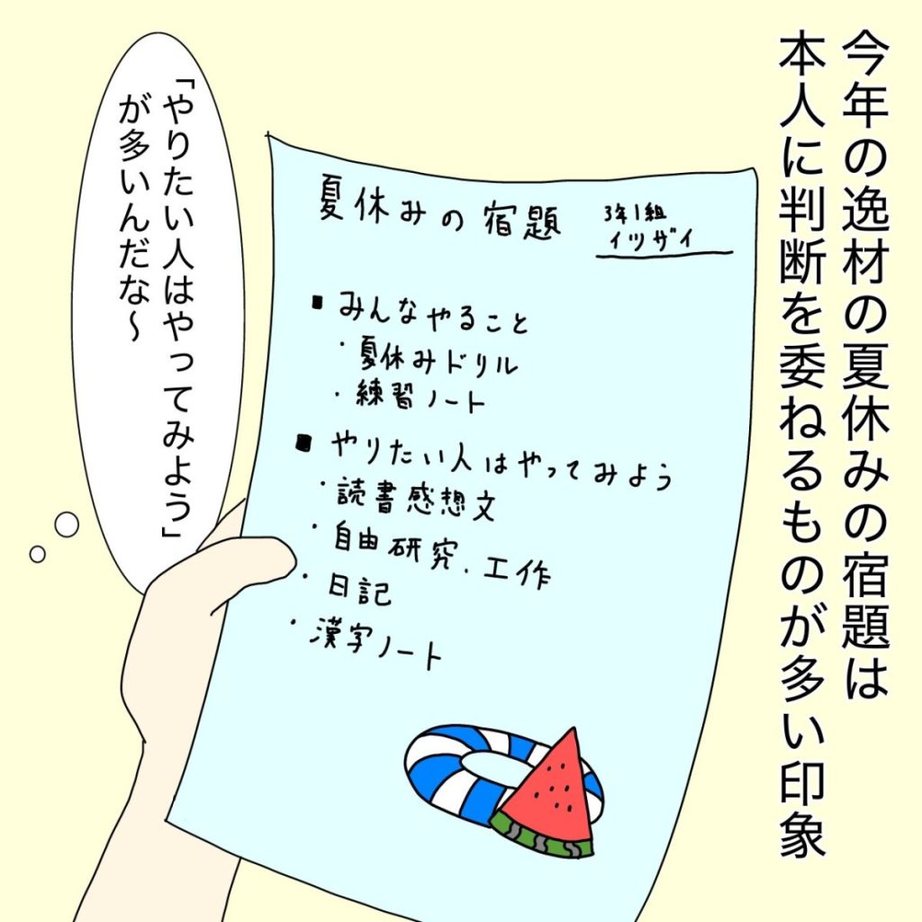 長女・逸材の夏休みの宿題を確認したところ、「やりたい人はやってみよう」という個々の判断に任せる宿題がいくつかありました。私としては「できるものはやってほしい」という思いなのですが、逸材の考えは・・・