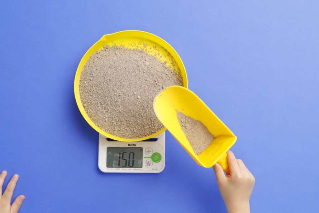 乾燥させた荒木田土150gに水30ccを加え、器の中でしっかりこねてかたまりにします。