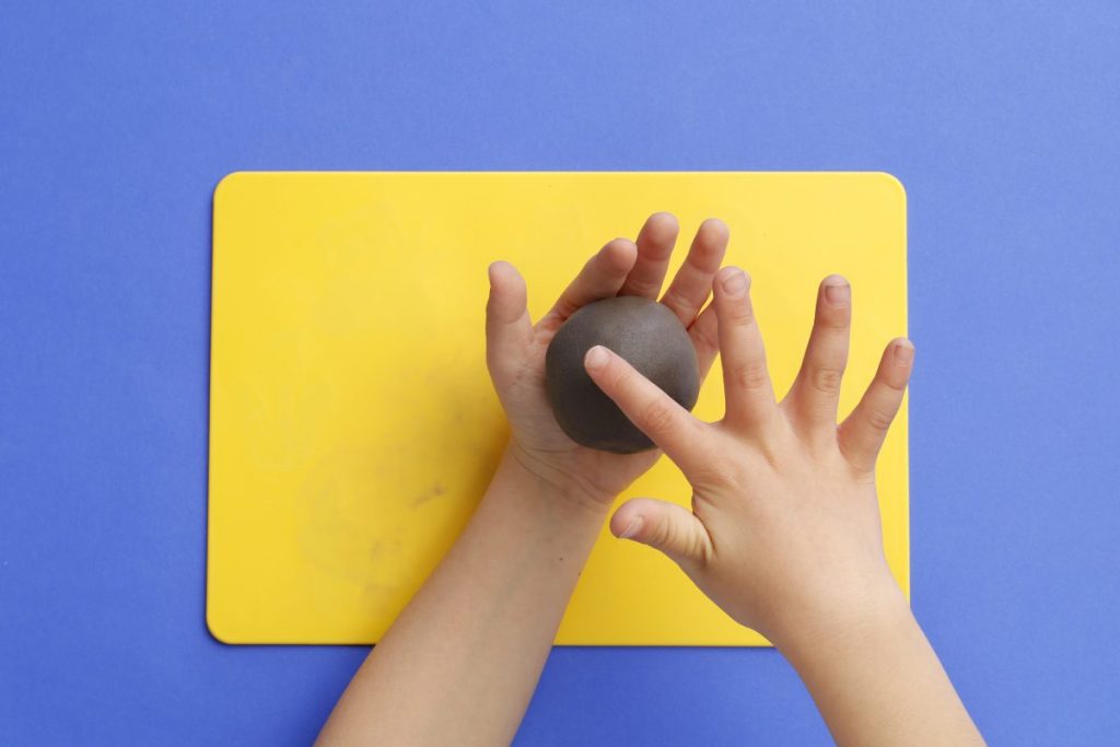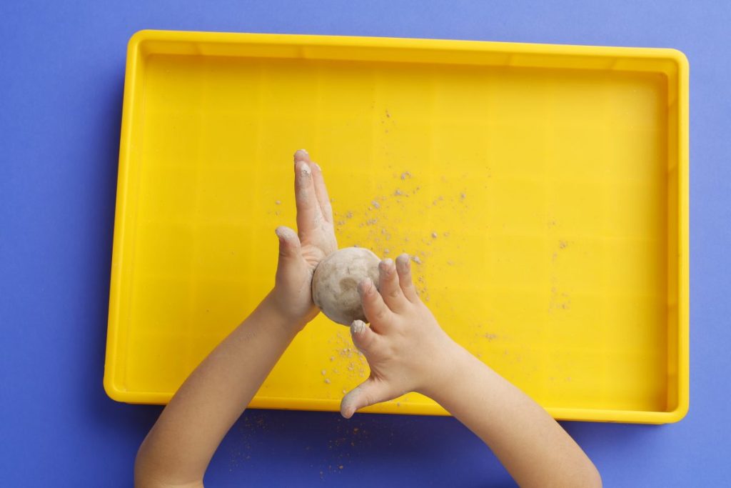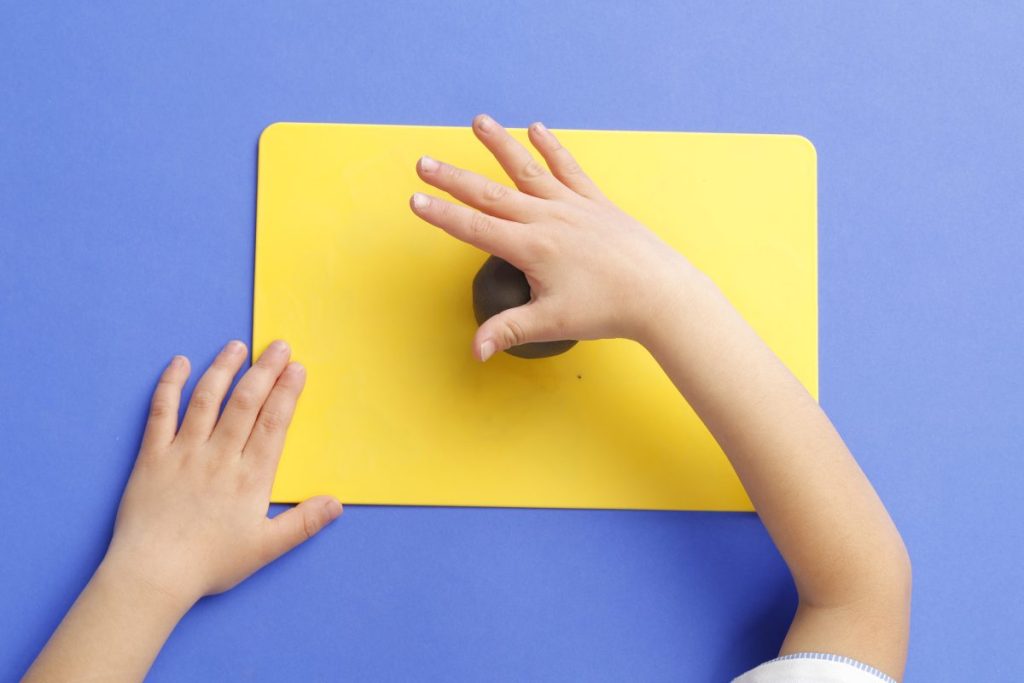 粘土板の上で、手のひらで転がしたり、軽く叩いたりしながら丸く形を整えます。形が整ったら、少し休ませます。